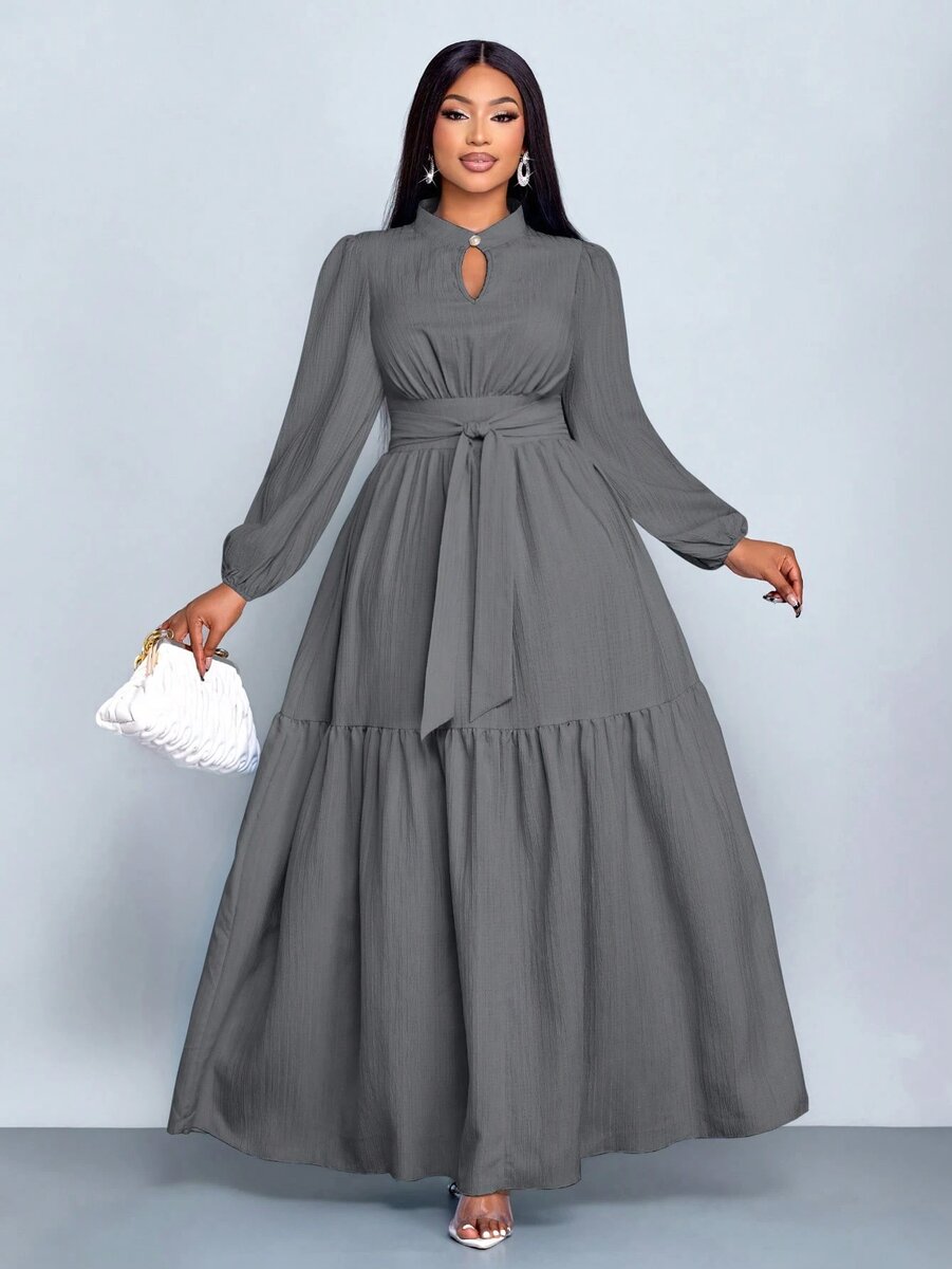 Découvrez cette somptueuse robe longue grise, parfaite pour les soirées ou les événements spéciaux. Avec son design fluide et chic, elle offre une élégance intemporelle. Le noeud à la taille ajoute une touche de sophistication, mettant en valeur votre silhouette. Confectionnée dans un tissu doux et confortable, elle est l'alliée idéale pour rester élégante toute la nuit. Faites tourner les têtes avec cette pièce iconique dans votre garde-robe.