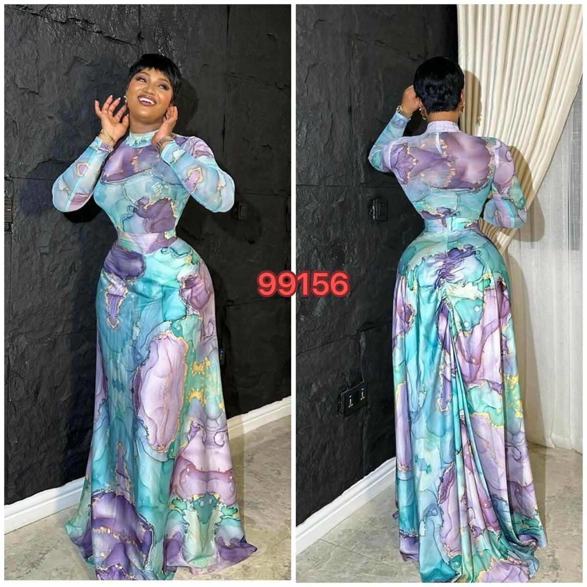 Découvrez cette magnifique robe longue élégante avec un imprimé artistique vibrante. Parfaite pour les occasions spéciales, elle épouse la silhouette avec grâce et sophistication. Idéale pour toutes les femmes qui souhaitent faire une impression inoubliable.