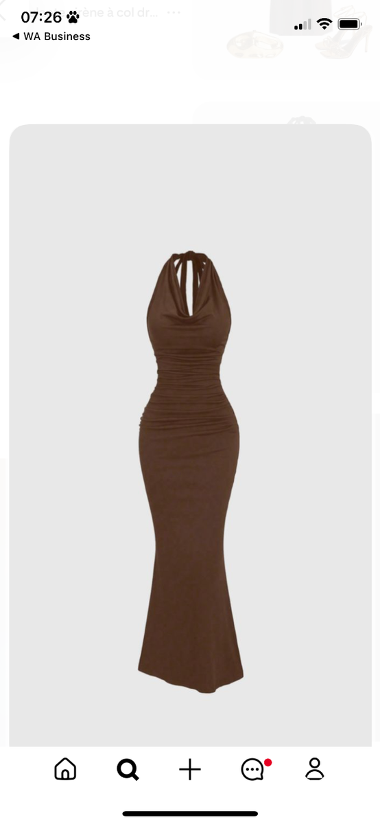 Cette robe longue marron est le choix parfait pour une soirée élégante. Avec sa coupe ajustée et son col drapé, elle sublime la silhouette. Confectionnée dans un tissu doux et extensible, elle offre un confort optimal. Idéale pour les occasions spéciales ou une sortie romantique.