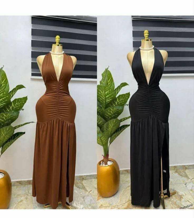 Cette robe longue glamour est parfaite pour vos soirées et événements spéciaux. Avec son décolleté plongeant audacieux et sa coupe flatteuse, elle met en valeur la silhouette avec élégance. Disponible en deux couleurs intemporelles, cette robe est un incontournable pour une allure chic et sophistiquée. Idéal pour une soirée cocktail ou un dîner romantique.