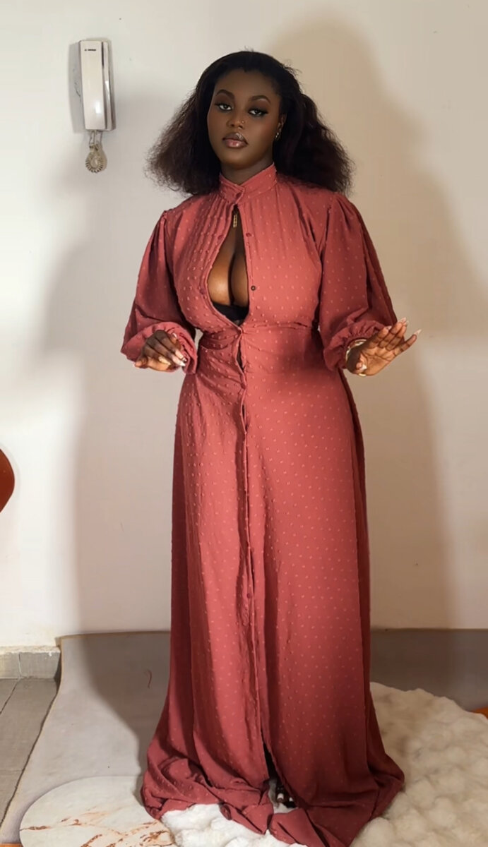 Découvrez notre robe longue élégante, parfaite pour les soirées et occasions spéciales. Confortable et stylée, cette robe met en valeur votre silhouette avec son design unique.