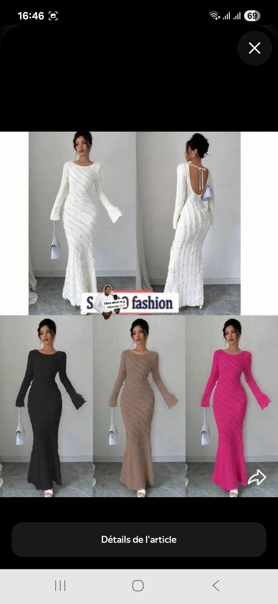 Découvrez notre robe longue élégante, parfaite pour toutes occasions spéciales. Disponible en différentes couleurs, elle offre un design raffiné avec des manches évasées et un dos ouvert audacieux. Fabriquée avec des matériaux de qualité pour un confort optimal. Idéale pour des soirées, mariages ou événements formels.