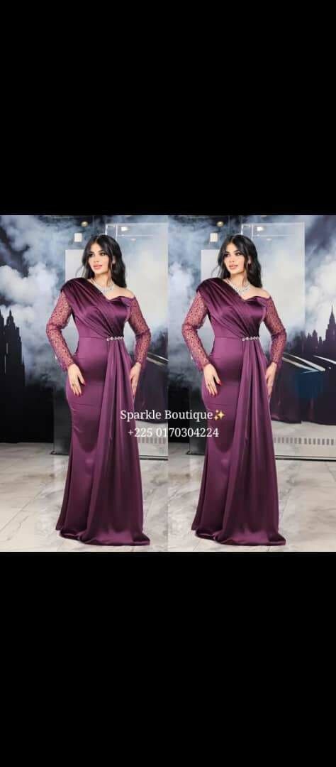 Découvrez notre robe longue en satin pour une élégance ultime. Parfaite pour les soirées et événements spéciaux, elle offre une coupe flatteuse avec des manches en dentelle et un drapé sophistiqué. Soyez le centre d'attention avec ce modèle luxueux. Idéale pour mettre en valeur votre silhouette et ajouter une touche de glamour.