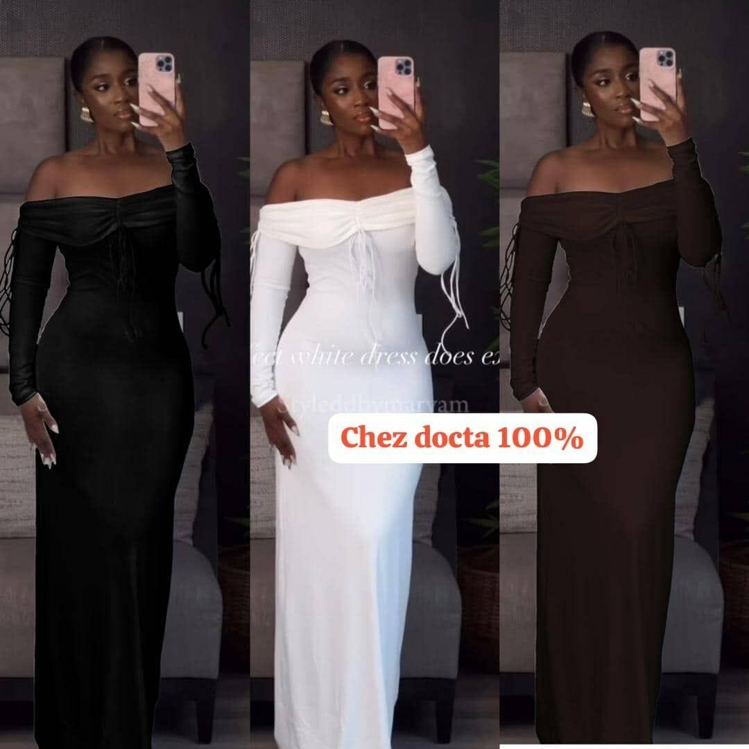 Découvrez cette robe longue élégante, parfaite pour toutes les occasions spéciales. Fabriquée avec des matériaux de haute qualité, elle offre confort et style. Que ce soit en noir, blanc ou marron, cette robe saura mettre en valeur votre silhouette avec son design glamour et ses manches uniques. Idéale pour une soirée chic ou un événement formel.