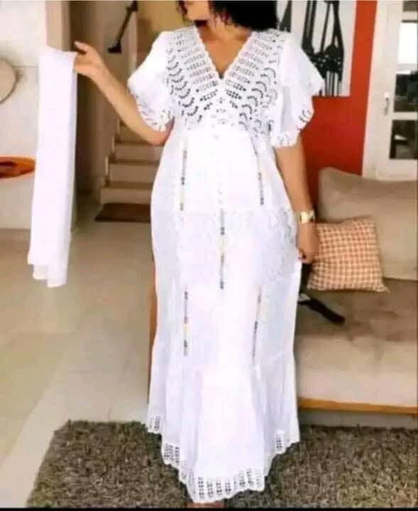 Découvrez cette somptueuse robe longue en dentelle blanche, parfaite pour toutes vos occasions spéciales. Fabriquée avec des matériaux de haute qualité, elle offre un confort inégalé et une élégance intemporelle. Idéale pour des soirées d'été, des mariages ou des événements formels. Cette robe vous garantira un look chic et raffiné.