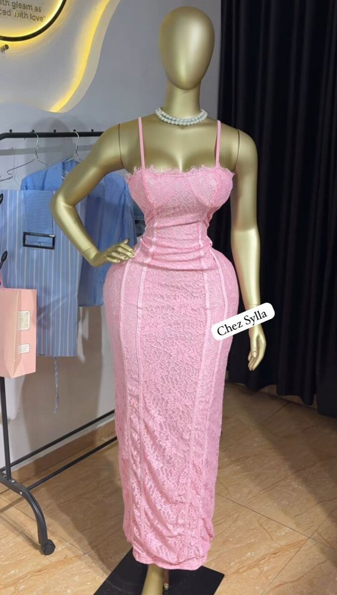 Découvrez cette robe longue en dentelle rose, parfaite pour les occasions spéciales. Confectionnée avec une attention aux détails, elle offre une silhouette élégante et féminine. Idéale pour les soirées ou les événements importants.