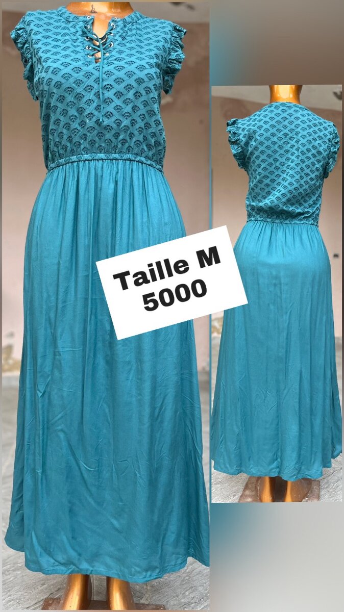 Élégante robe longue en dentelle bleu turquoise, parfaite pour les occasions spéciales ou les sorties estivales.