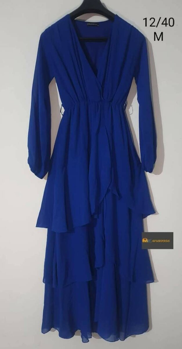 Robe longue en escalier bleue