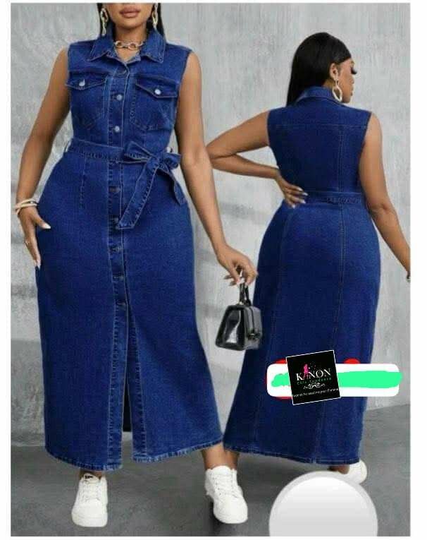 Robe longue en jean sans manches avec ceinture. Style casual et élégant à la fois, parfaite pour le quotidien. Idéale pour un look décontracté avec des baskets ou plus chic avec des talons. Confortable et moderne, un indispensable de votre garde-robe.