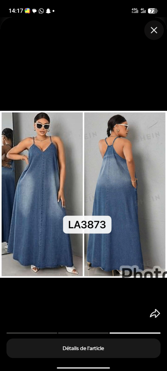 Optez pour cette robe longue en jean, idéale pour une allure chic et décontractée. Parfaite pour toutes vos sorties, elle s'adapte à toutes les silhouettes avec sa coupe fluide et son design moderne. Un incontournable de votre garde-robe!