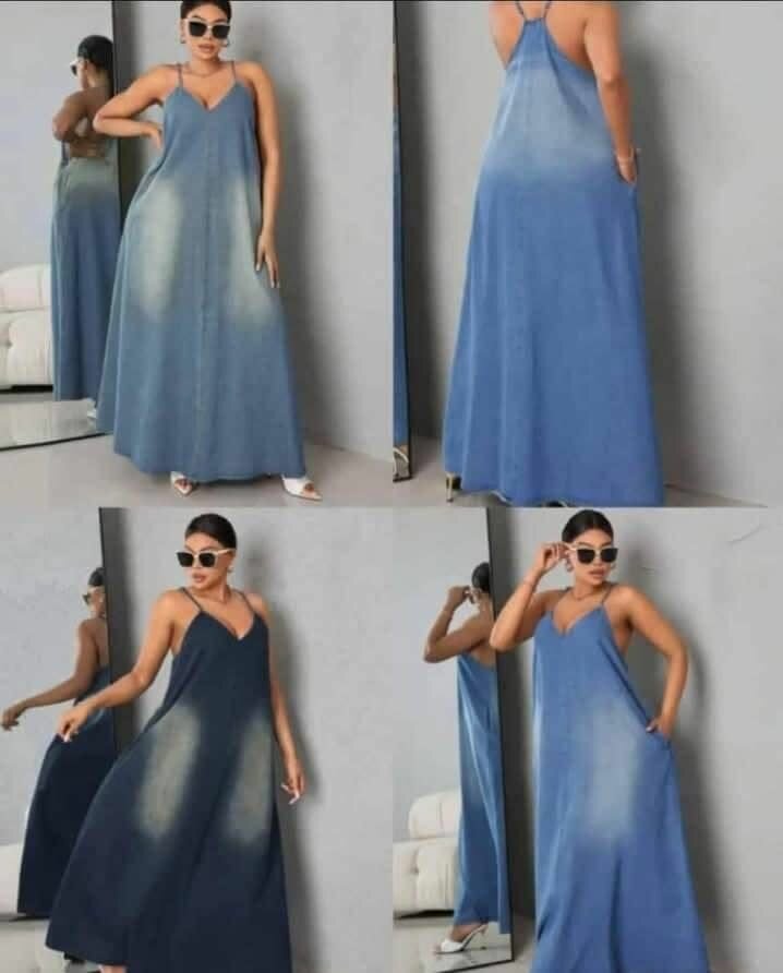 Découvrez cette robe longue en jean, parfaite pour un style décontracté et chic. Confortable et légère, elle est idéale pour l'été ou une sortie décontractée. La coupe ample offre une silhouette flatteuse, tandis que le design en denim ajoute une touche moderne. Portez-la avec des sandales ou des talons pour créer différents looks. Un choix parfait pour les journées ensoleillées ou les soirées relaxantes.