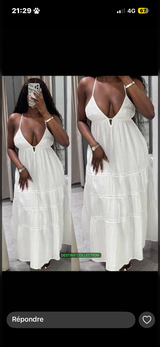 Élégante robe longue blanche pour les journées estivales. Conçue pour apporter confort et style, cette robe sans manches offre une coupe fluide parfaite pour les sorties décontractées ou les soirées d'été. Tissu léger et respirant, idéal pour garder une allure fraîche même par temps chaud. Un indispensable pour votre garde-robe estivale.