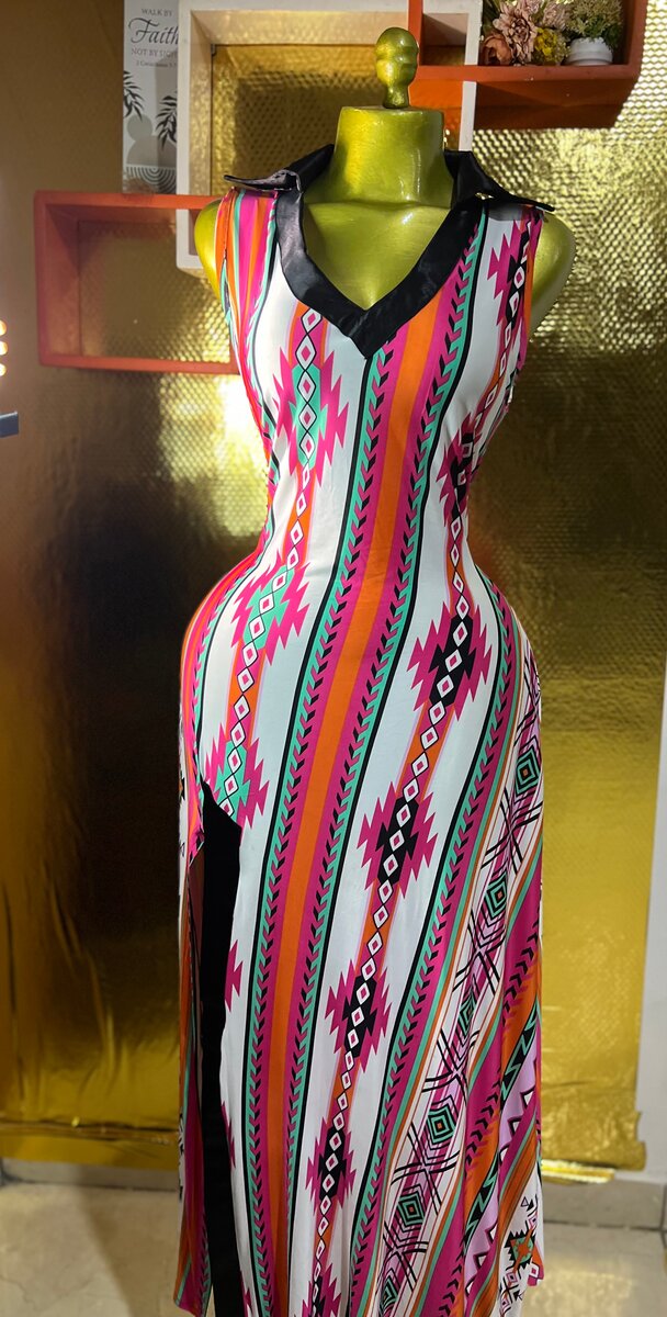 Découvrez cette robe longue éthnique aux motifs vibrants, parfaite pour les soirées d'été. Son design fluide et ses couleurs éclatantes vous assurent une allure captivante. Un choix idéal pour celles qui souhaitent se démarquer avec style et élégance.