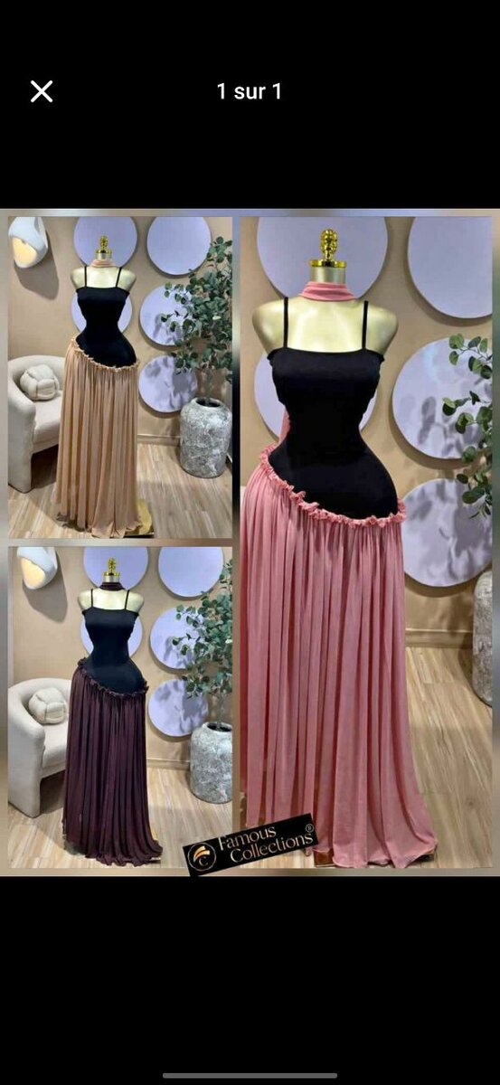 Élégante robe longue avec haut ajusté et jupe évasée. Parfait pour les soirées ou événements spéciaux. Disponible en plusieurs couleurs attrayantes. Ajoutez du glamour et du style à votre garde-robe.