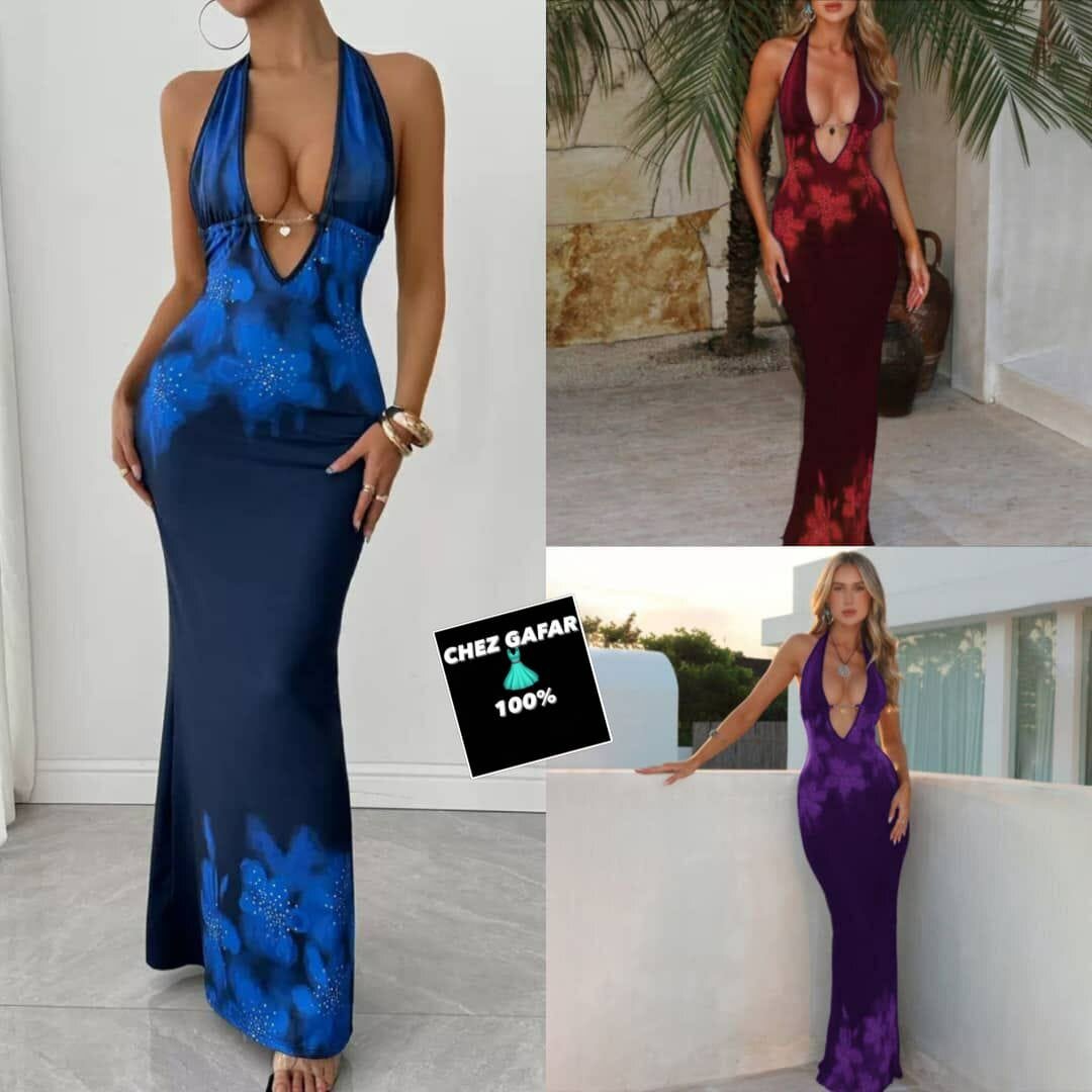 Optez pour cette robe longue évasée, idéale pour une soirée glamour ou une sortie spéciale. Confectionnée dans un tissu doux et extensible, elle assure un confort optimal tout en mettant en valeur votre silhouette. Avec son décolleté plongeant et ses couleurs vibrantes, cette robe est un choix parfait pour celles qui souhaitent se démarquer. Parfaite pour les fêtes ou un dîner romantique.