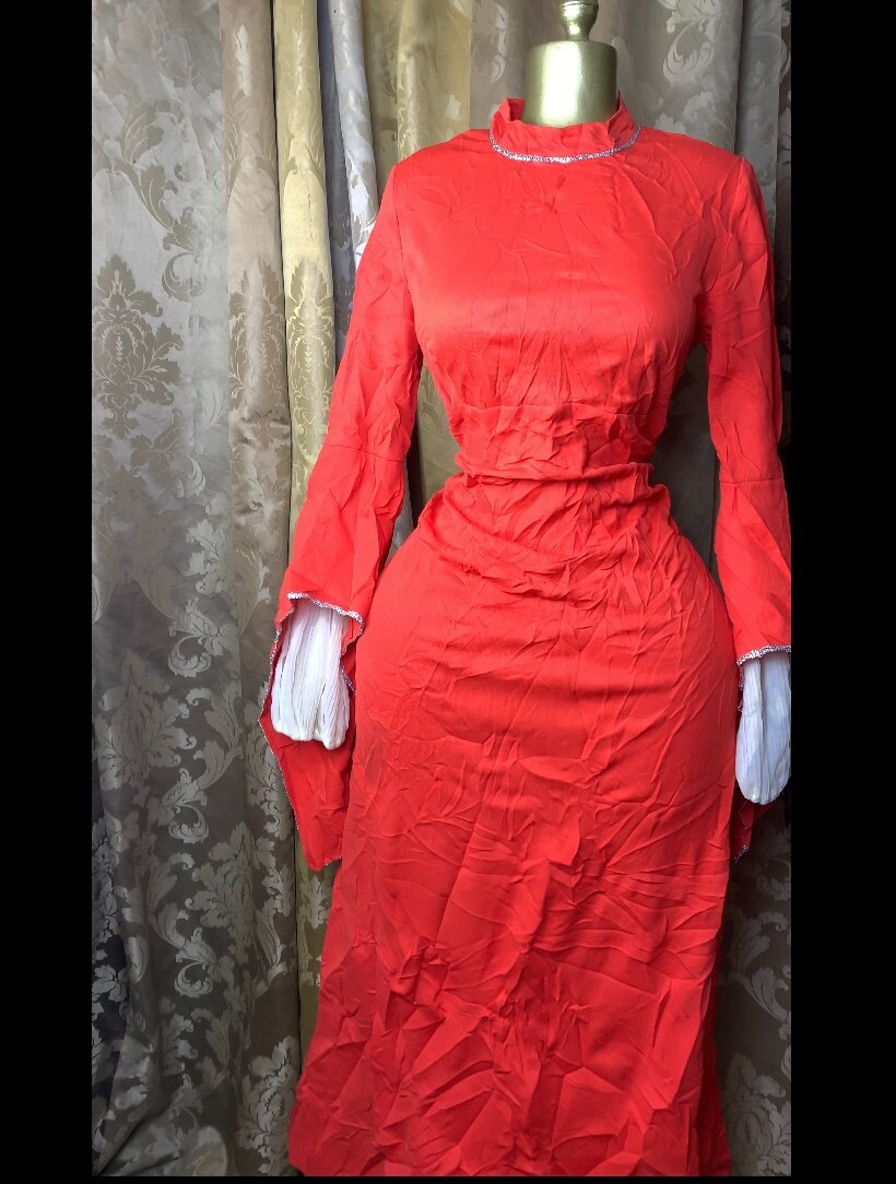Découvrez cette élégante robe longue évasée rouge, idéale pour une soirée chic ou un événement spécial. Sa coupe flatteuse met en valeur la silhouette, tandis que les manches originales ajoutent une touche unique. Parfaite pour un look sophistiqué et féminin, cette robe en fait un choix incontournable de votre garde-robe.