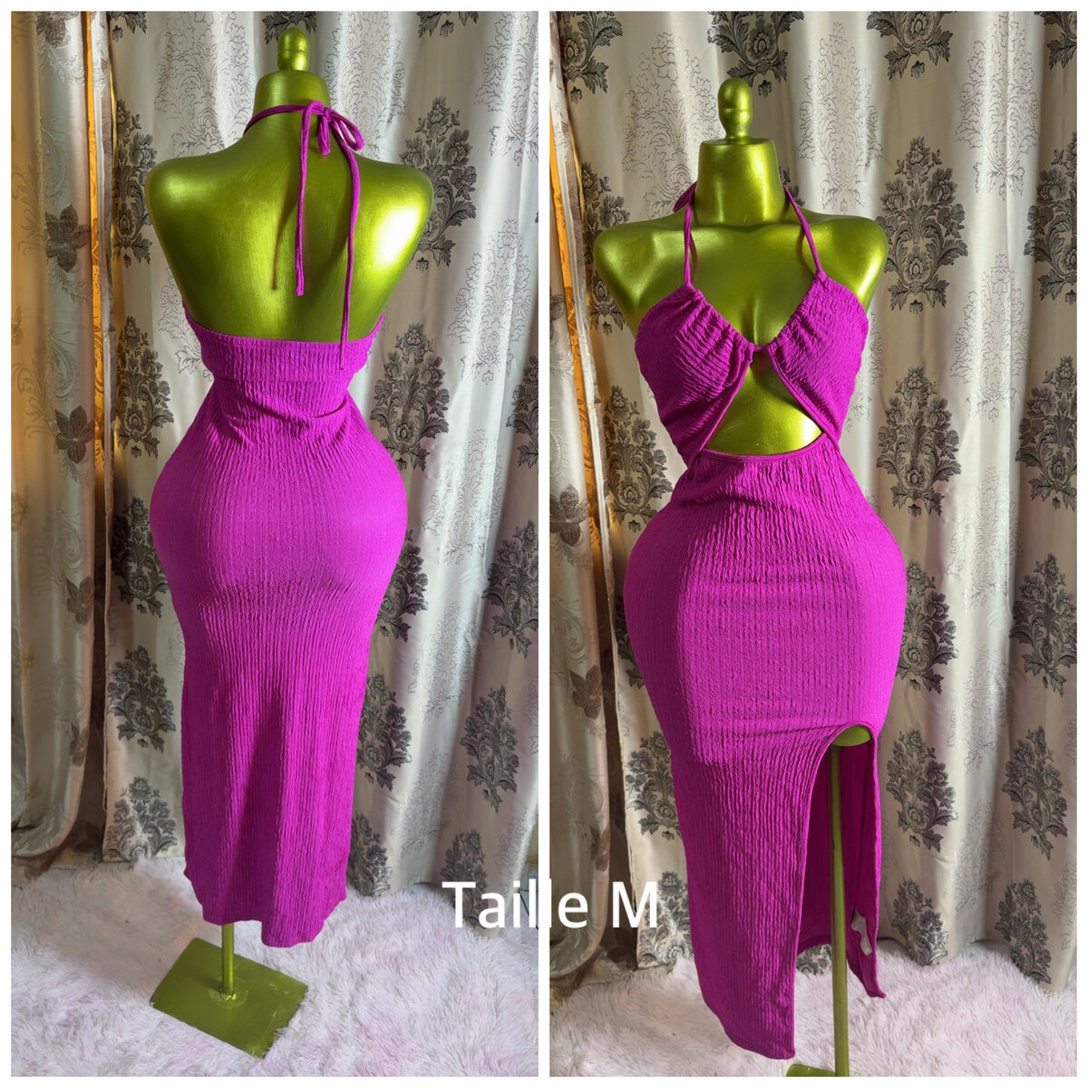 Découvrez cette robe longue fendue pour un look chic et audacieux. Parfaite pour des soirées élégantes, cette robe est conçue pour flatter la silhouette et attirer les regards. Taille M disponible.