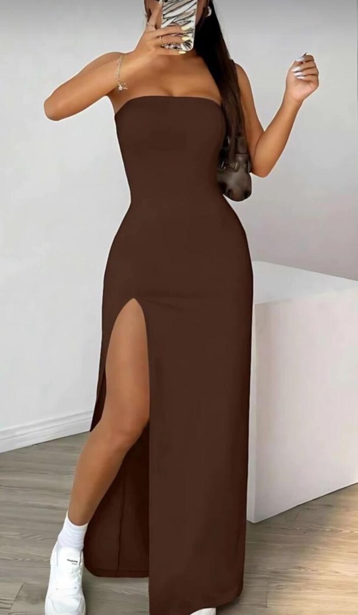 Découvrez notre robe longue fendue marron, parfaite pour vos soirées chic. Dotée d'une coupe près du corps et d'une fente séduisante, elle mettra en valeur votre silhouette tout en vous offrant confort et allure. Idéale pour les événements spéciaux, elle se marie facilement avec vos accessoires préférés.