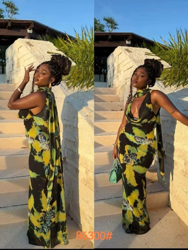 Adoptez un style chic avec cette robe longue à imprimé vibrant. Idéale pour les soirées estivales, elle assure une allure élégante tout en offrant un confort optimal. Parfaite pour celles qui souhaitent se démarquer.