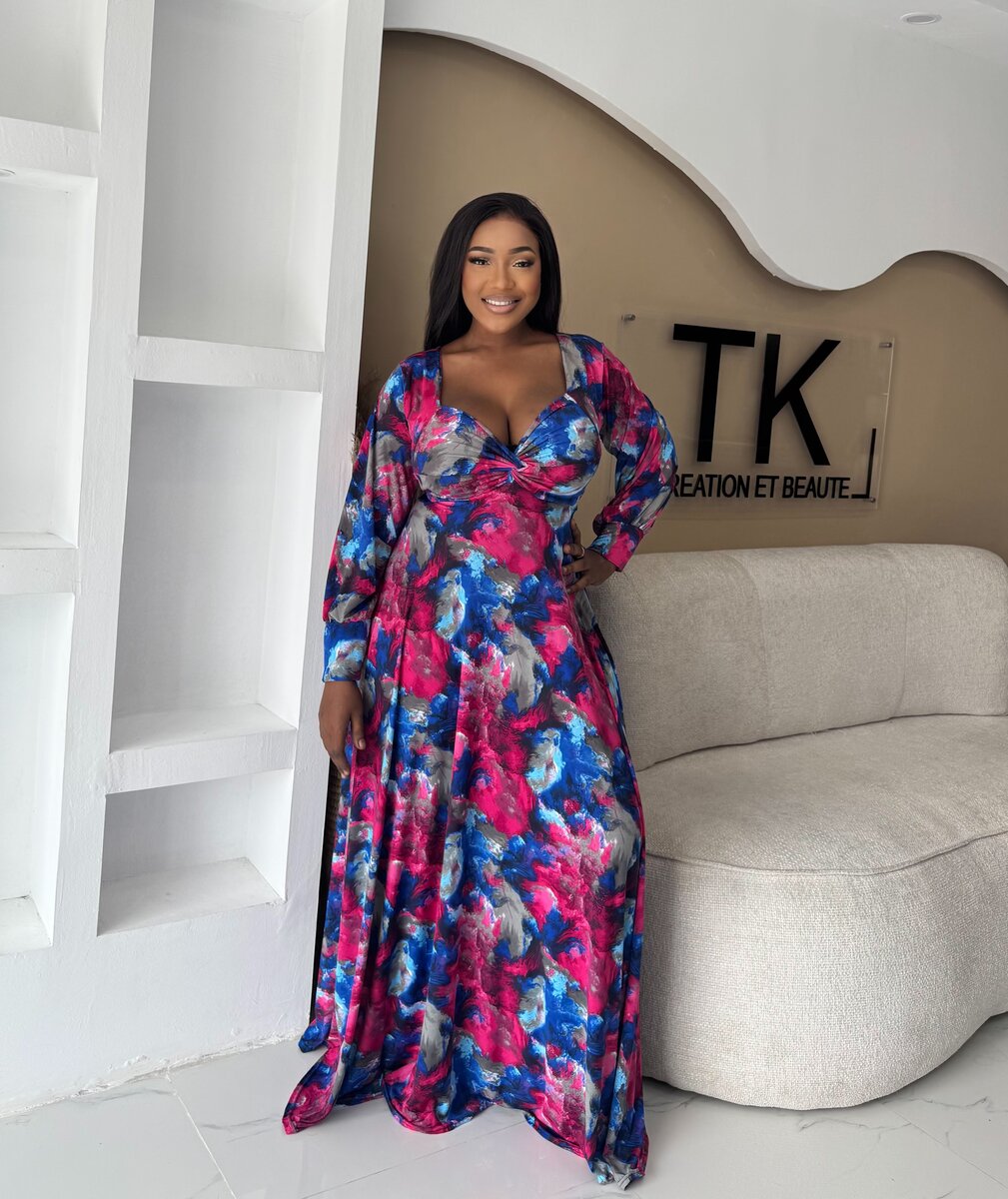Ravissante robe longue avec motif fleuri vibrant, parfaite pour une sortie élégante ou un événement spécial. Confectionnée avec un tissu fluide et confortable, cette robe offre un style chic et intemporel. Idéale pour les soirées d'été ou les occasions formelles.