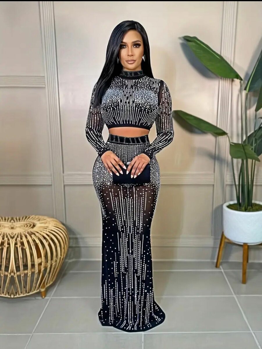 Éblouissez avec cette robe longue pailletée, parfaite pour les soirées élégantes et les occasions spéciales. Conçue avec une coupe ajustée et un éclat scintillant, elle souligne votre silhouette avec élégance. Idéale pour briller lors de vos événements les plus mémorables.