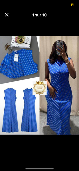 Découvrez cette robe longue élégante à rayures bleues, idéale pour toutes les occasions spéciales. Confectionnée avec un tissu doux et fluide, elle offre un confort optimal et un look chic. Parfaite pour les journées d'été ou les soirées habillées, cette robe deviendra votre choix incontournable. Sa conception flatteuse met en valeur votre silhouette tout en assurant une liberté de mouvement. Ajoutez une touche de sophistication à votre garde-robe !