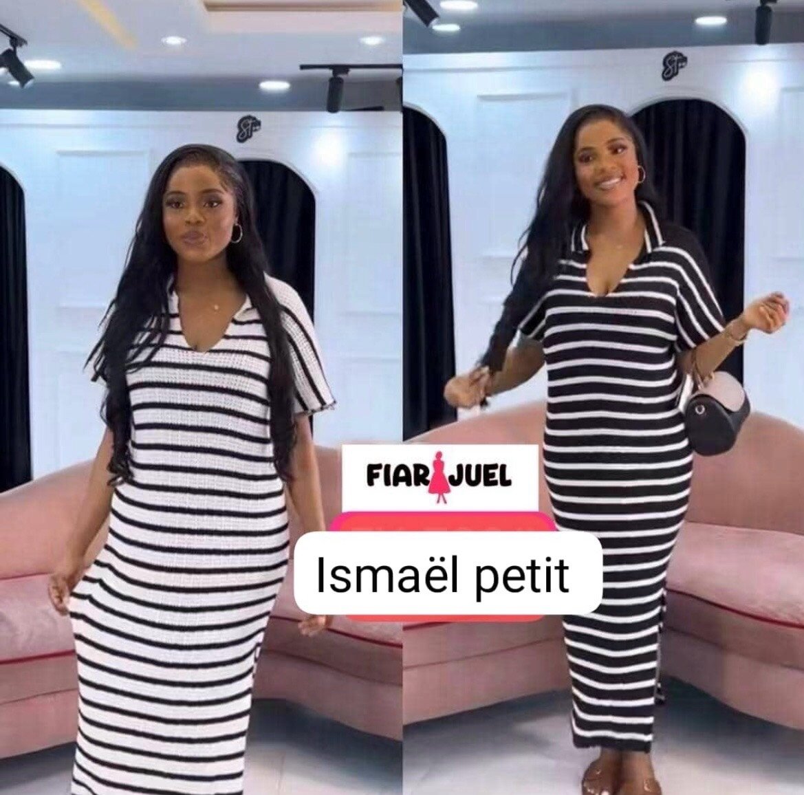 Adoptez un style chic avec cette robe longue rayée. Parfaite pour toutes les occasions, elle met en valeur votre silhouette avec charme et élégance. Idéale pour une sortie entre amis ou un dîner romantique.