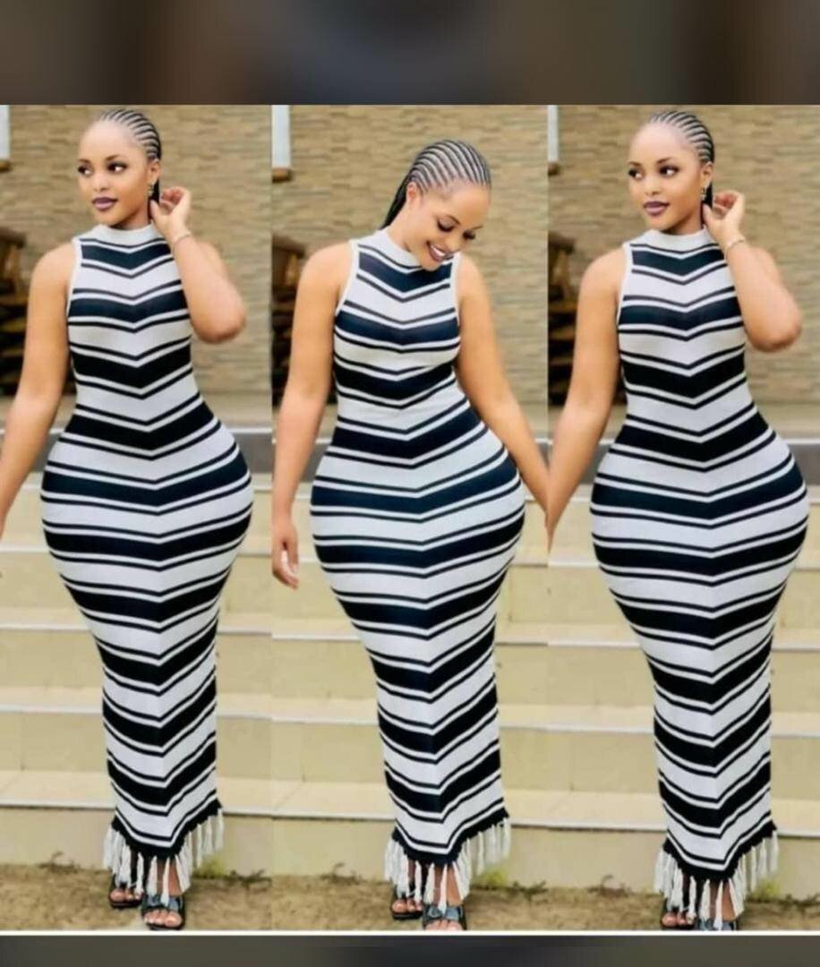 Découvrez cette magnifique robe longue à rayures noires et blanches. Sa coupe ajustée sublime votre silhouette tout en offrant un grand confort. Idéale pour les événements chics ou une sortie en soirée. Ajoutez une touche de sophistication à votre garde-robe dès aujourd'hui!