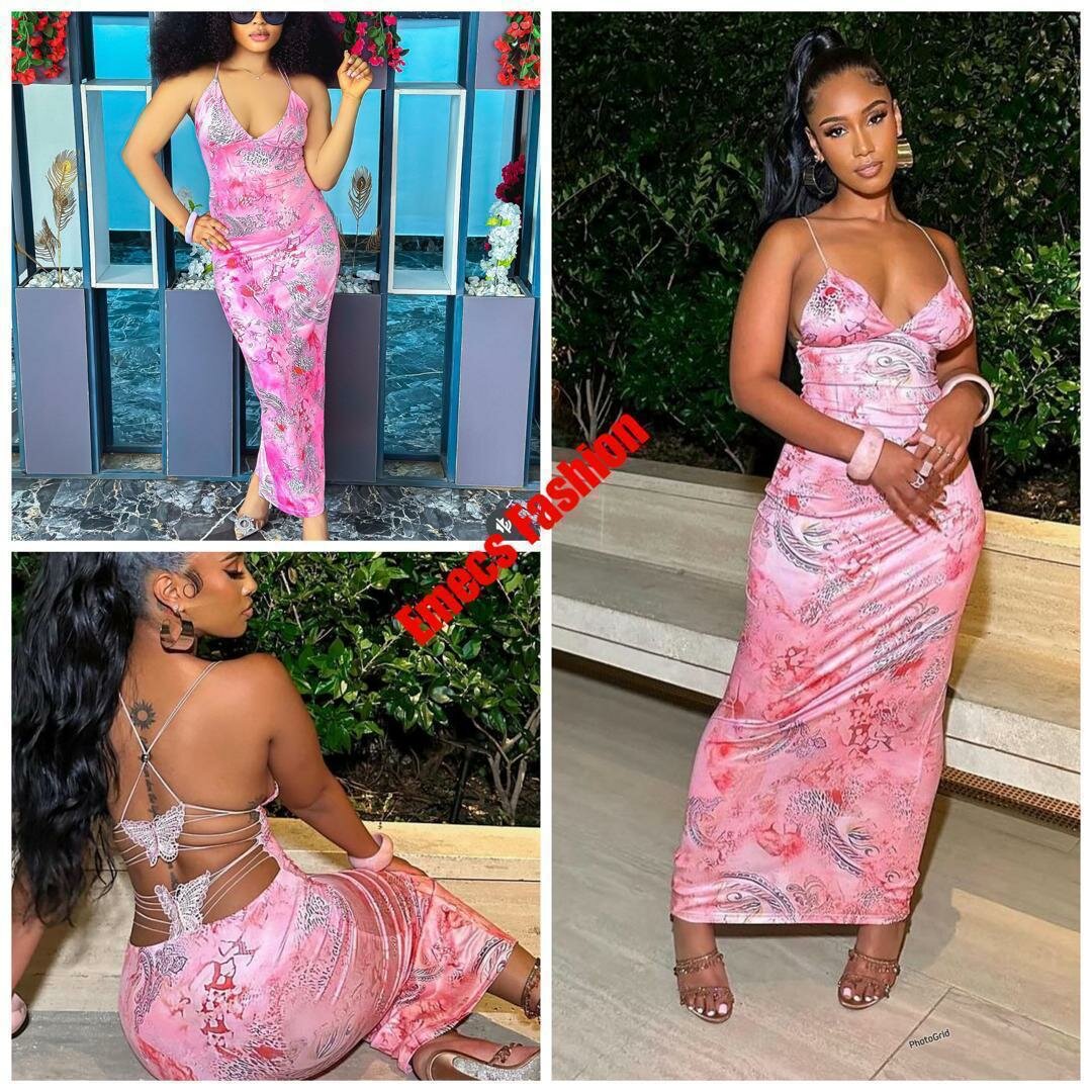 Élégante robe longue en satin à motif floral rose. Idéale pour soirées et événements spéciaux. Bretelles croisées dans le dos pour une touche glamour et féminine.