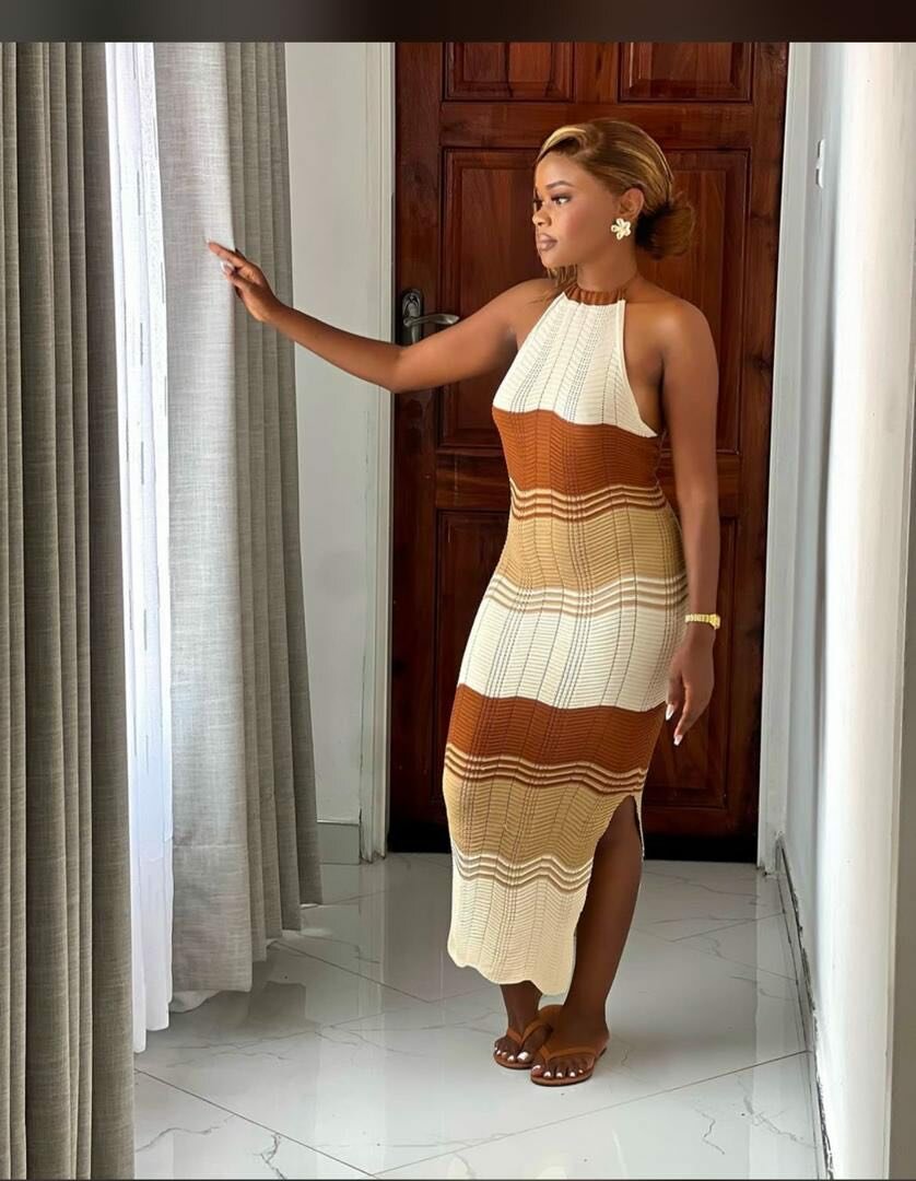 Découvrez une robe longue tricotée qui épouse parfaitement vos courbes. Idéale pour un look chic et décontracté, elle est parfaite pour les sorties estivales et les occasions spéciales. Avec ses tons terre cuite, elle ajoute une touche chaleureuse à votre tenue. Portez-la avec vos sandales préférées pour un style unique et confortable.