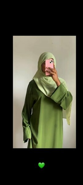 Robe longue verte fluide avec hijab assorti, parfaite pour vos sorties élégantes ou tenues de tous les jours. Etat neuf.