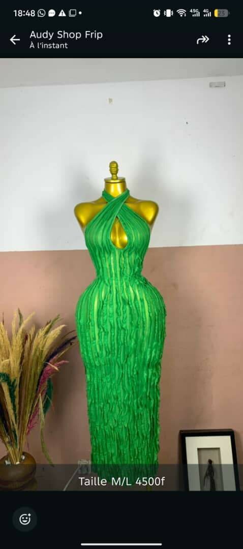 Cette robe longue verte transforme votre look avec son design unique et élégant. Transparente, à doubler. Confectionnée pour épouser vos courbes, elle est idéale pour des occasions spéciales ou des soirées élégantes. Offrez-vous un style inoubliable et faites tourner les têtes!
