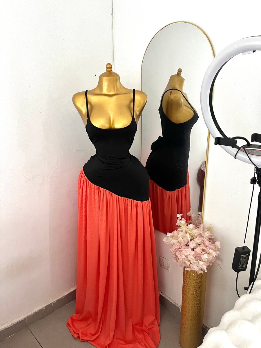 Éblouissez lors de vos soirées avec cette robe maxi bicolore. Parfaite pour les femmes recherchant élégance et confort, cette robe offre une silhouette flatteuse avec un haut ajusté et une jupe évasée. Idéale pour des réceptions, des dîners ou des événements spéciaux.