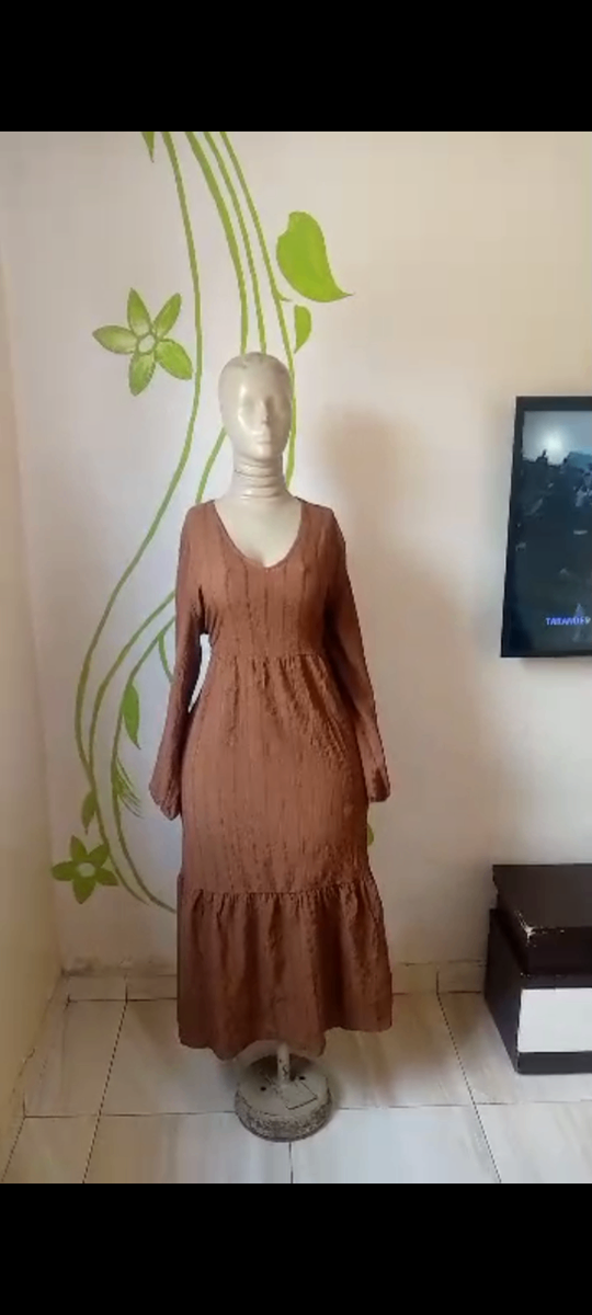 Cette robe maxi marron est l'ajout parfait à votre garde-robe. Avec sa coupe fluide et son design élégant, elle convient pour diverses occasions, du quotidien aux événements spéciaux. Fabriquée avec des matériaux de qualité, elle offre confort et style. Portez-la avec des accessoires pour un look complet.