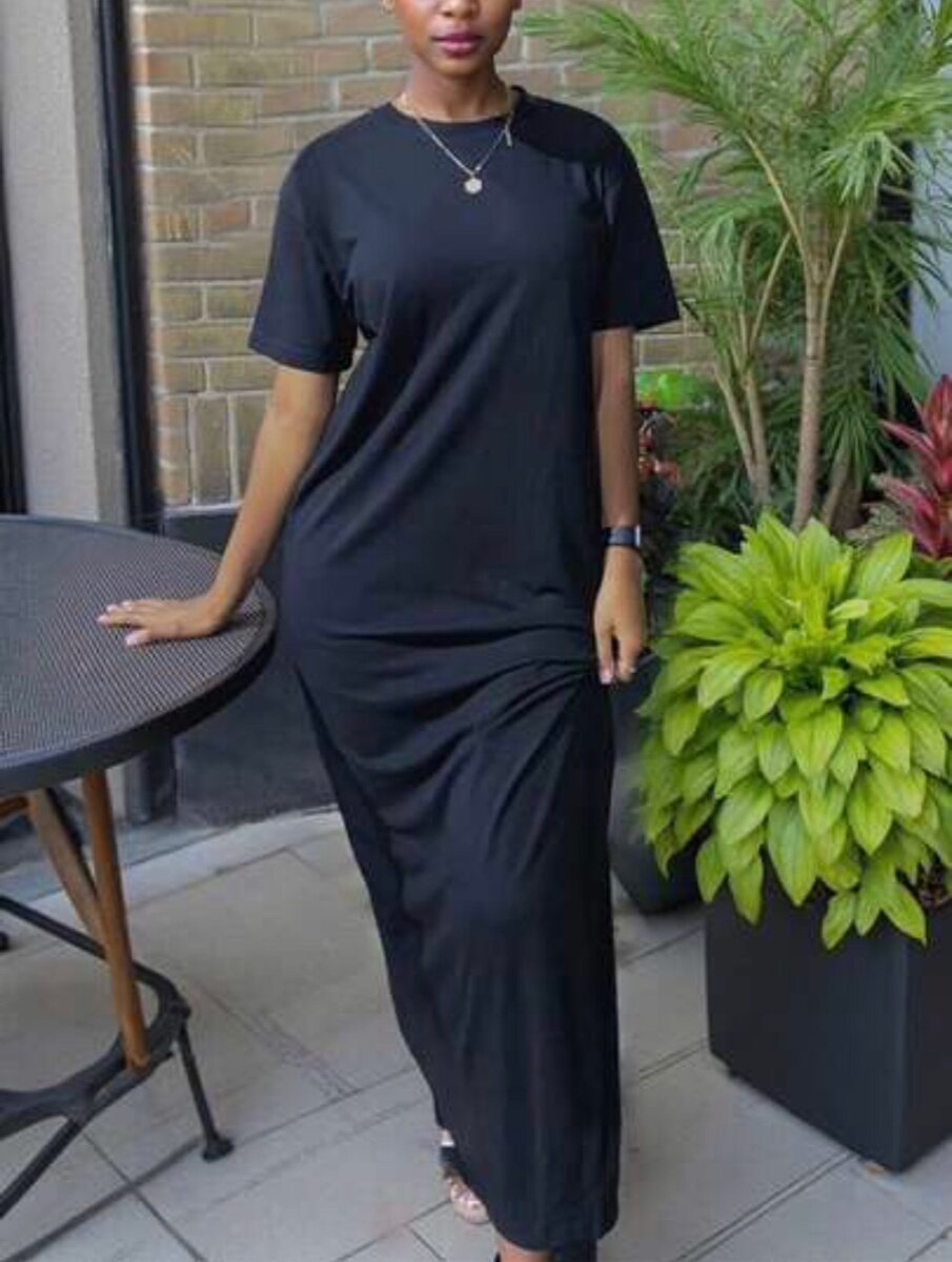Cette robe maxi noire est l'ajout parfait à votre garde-robe. Conçue pour être élégante et confortable, elle est idéale pour n'importe quelle occasion, que ce soit une sortie décontractée ou une soirée spéciale. Le tissu doux et fluide assure un confort tout au long de la journée. Avec son style épuré, cette robe met en valeur votre silhouette tout en offrant un look chic et moderne. Parfaite pour les femmes qui apprécient l'alliance entre style et confort.