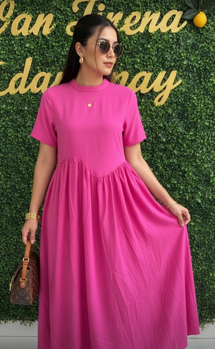 Cette robe maxi rose est parfaite pour un look chic et décontracté. Conçue dans un style élégant avec un tissu fluide et des manches courtes, elle est idéale pour les journées ensoleillées ou les occasions spéciales. Portez-la avec des accessoires dorés pour un effet encore plus glamour.