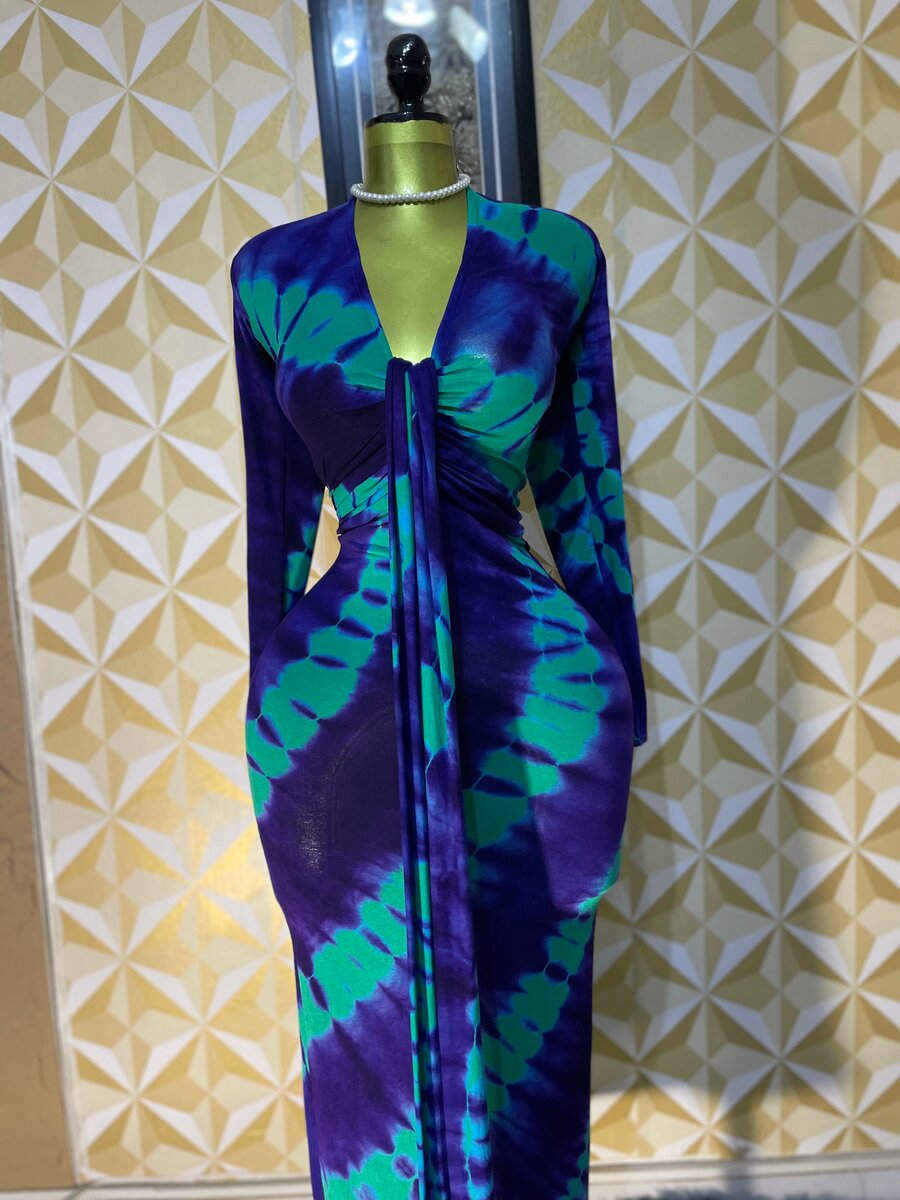 Faites tourner les têtes avec cette magnifique robe midi tie and dye élégante. Ses nuances vibrantes de bleu et de vert forment un motif captivant, idéal pour toutes les occasions. Conçue pour sublimer votre silhouette, elle présente des manches longues et un décolleté en V profond pour une touche de sophistication. Parfaite pour un cocktail, une soirée chic ou une sortie décontractée stylée. Associez-la à vos accessoires préférés pour parfaire votre look et affirmer votre style avec audace.