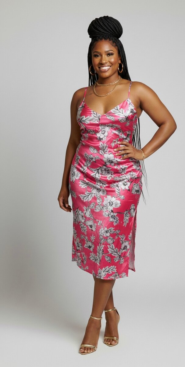 Optez pour l'élégance avec cette robe midi florale en satin. Parfaite pour les soirées ou les occasions spéciales, elle offre une coupe flatteuse et un design chic. Tissu doux et luxueux pour un confort exceptionnel. Complétez votre look avec vos talons préférés.