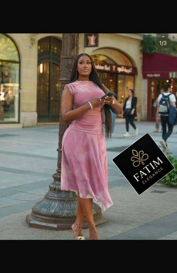 Élégante robe rose mi-longue de FATIM FASHION, idéale pour les occasions spéciales ou une sortie en ville. Conçue pour mettre en valeur votre silhouette.