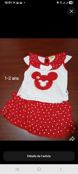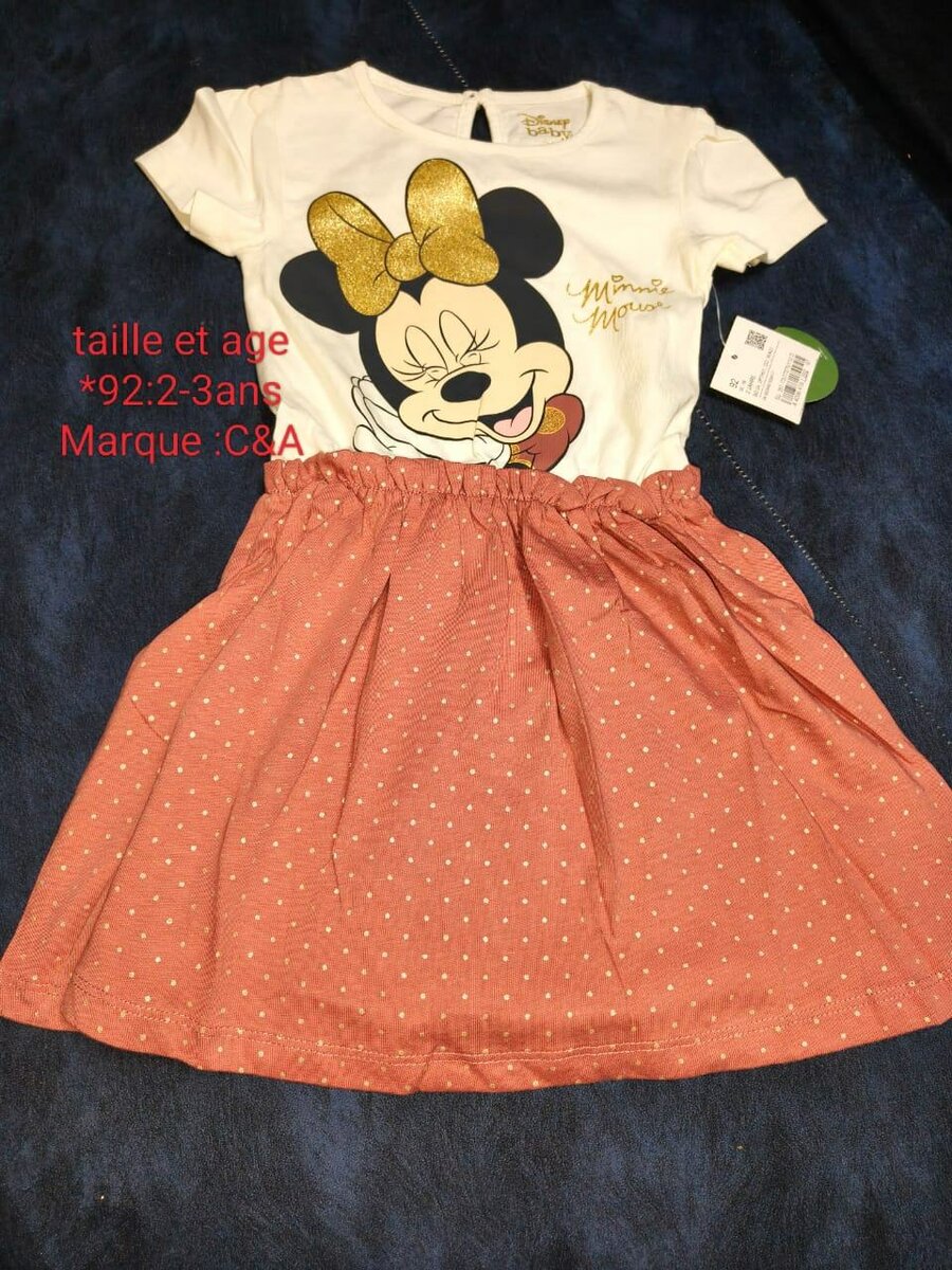 Adorable robe enfant Minnie Mouse pour filles de 2 à 3 ans. Parfaite pour les petites fans de Disney, avec un haut imprimé Minnie et une jupe à pois. Confortable et stylée, idéale pour toutes les occasions.