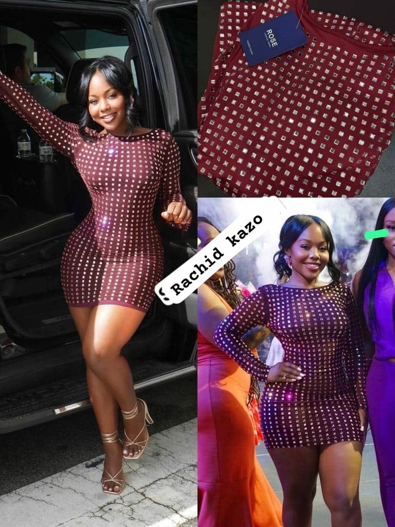 Raffinée robe moulante ornée de strass, idéale pour soirées glamour. Confortable et stylée, elle attire tous les regards. Un must-have pour votre garde-robe.