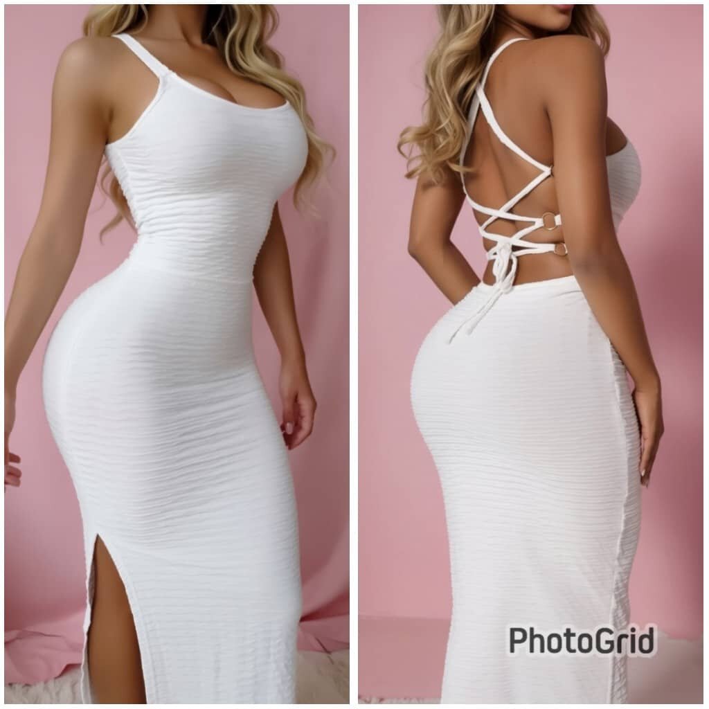 Découvrez notre robe blanche élégante, conçue pour sublimer vos courbes avec son design dos-nu croisé et sa coupe moulante flatteuse. Idéale pour des soirées élégantes ou des sorties spéciales, elle allie confort et style. Fabriquée en tissu doux et extensible, elle garantit un ajustement parfait et un look inoubliable. Démarquez-vous avec cette pièce incontournable de votre garde-robe !