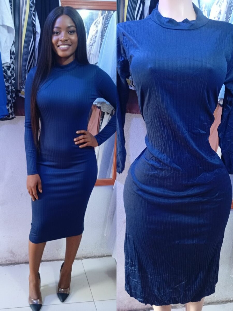 Robe moulante bleu nuit pour femme, parfaite pour des événements élégants ou des sorties spéciales. Conçue avec des matériaux de qualité pour un ajustement confortable et flatteur. Idéale pour un look chic et sophistiqué.
