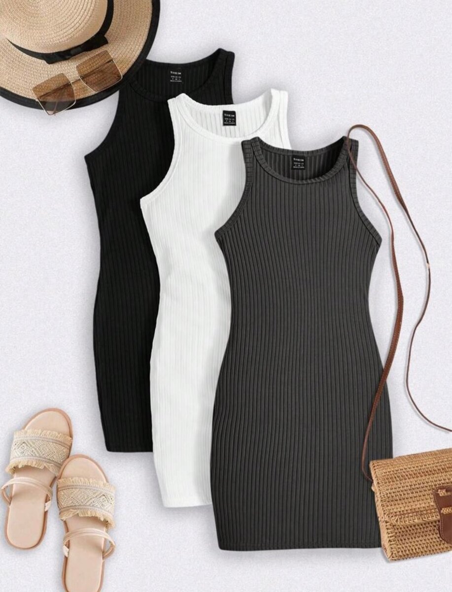 Découvrez l'élégance minimale avec notre robe moulante sans manches. En noir, blanc et gris, elle est idéale pour toutes les occasions. Fabriquée en tissu nervuré de qualité, elle offre confort et style. Parfaite pour l'été, les soirées ou une sortie décontractée. Une option incontournable pour les garde-robes modernes!