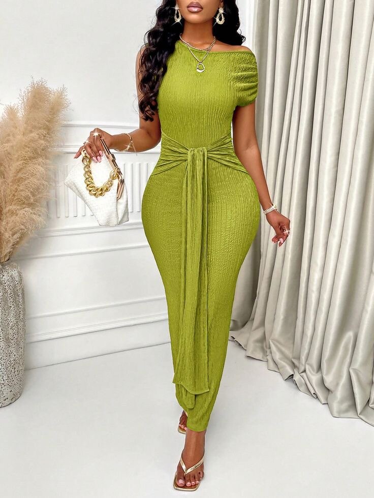 Découvrez cette robe longue moulante, parfaite pour une soirée élégante ou une sortie chic. Confectionnée dans un tissu extensible, elle offre une silhouette flatteuse et confortable. Détail noué à la taille pour une touche sophistiquée. Parfaite pour mettre en valeur votre style unique lors de toute occasion spéciale.