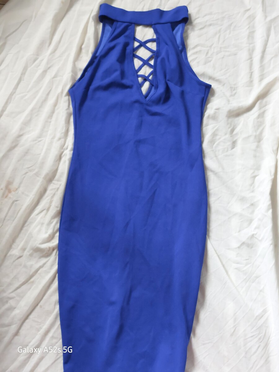 Robe moulante bleue avec détails ajourés dans le dos, parfaite pour les soirées élégantes. Tissu extensible pour un confort optimal. Idéale pour les événements spéciaux ou une sortie en ville. Un choix chic et tendance !