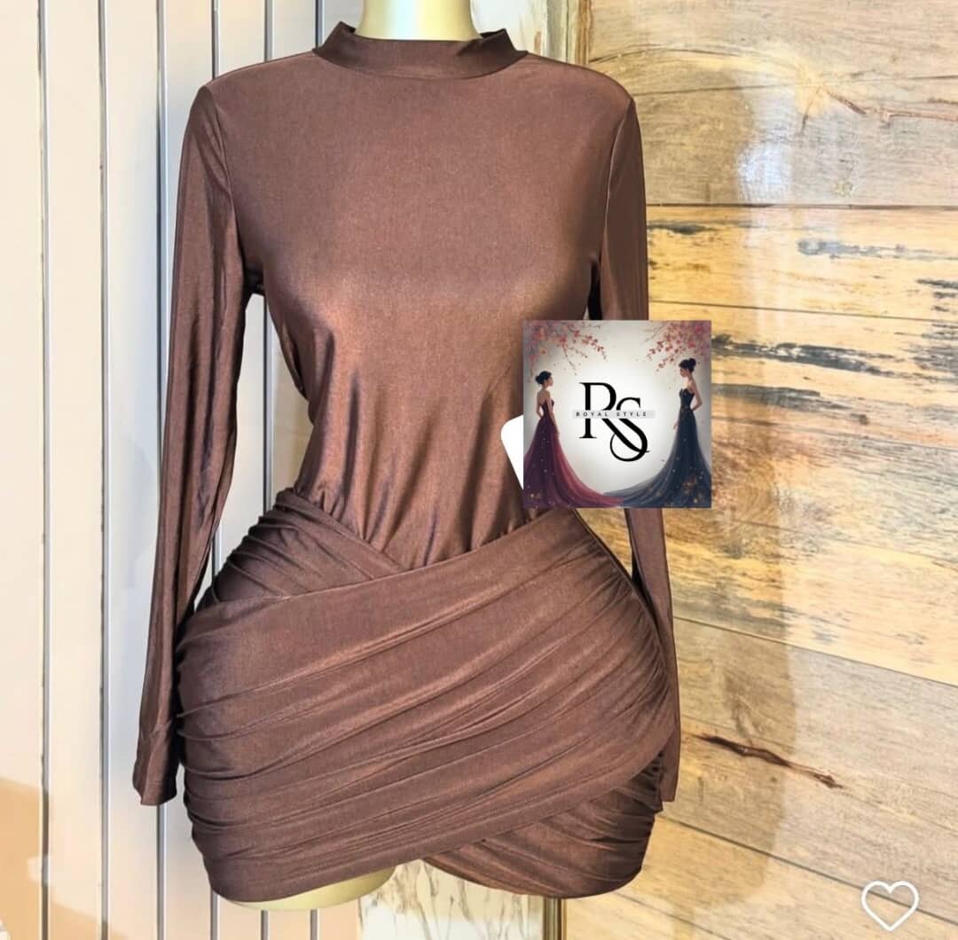Découvrez cette robe moulante en tissu brillant, idéale pour des soirées chics. Son design drapé met en valeur la silhouette avec élégance. Parfait pour les femmes modernes cherchant à faire une impression durable. Disponible en multiples tailles.