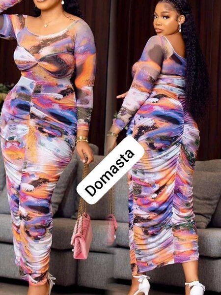 Robe tendance à manches longues et découpes audacieuses. Confectionnée dans un tissu extensible, elle offre confort et style. Parfaite pour les soirées. Disponible en taille S/M.