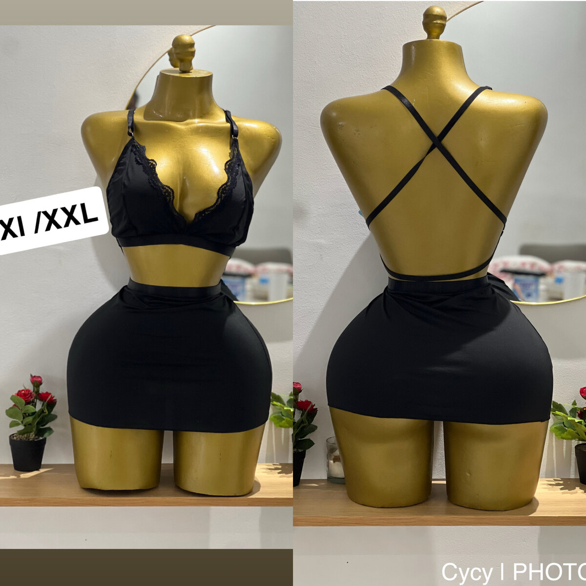 Cette robe moulante noire, avec des détails en dentelle, est l'idéale pour un style audacieux. Parfaite pour une soirée ou un événement spécial, elle mettra en valeur votre silhouette. Disponible en tailles XL à XXL . Le choix parfait pour attirer tous les regards.