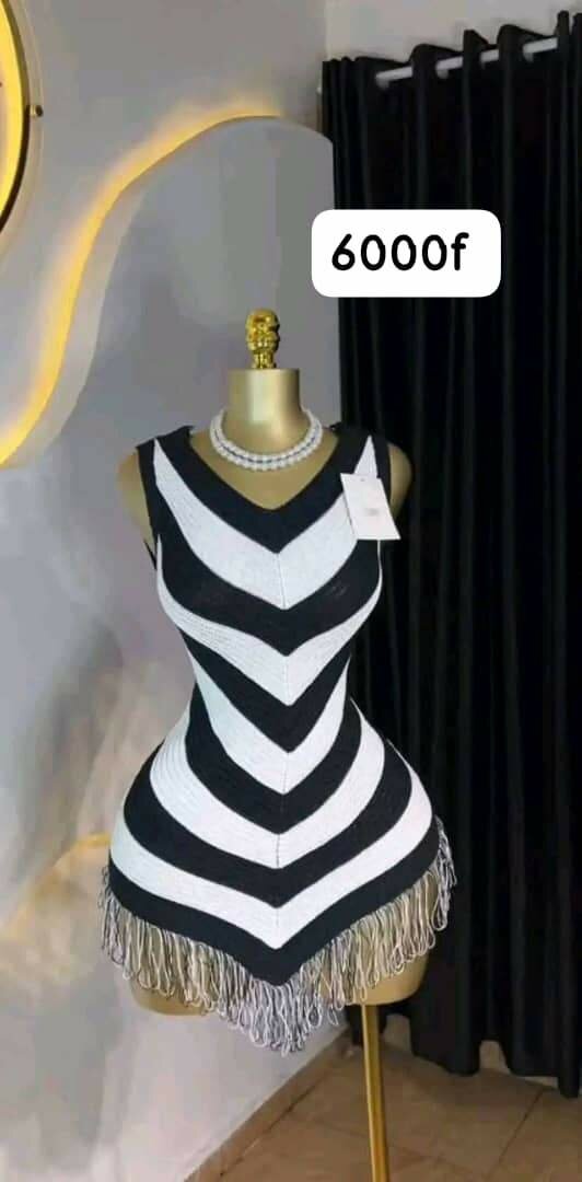 Découvrez notre robe moulante rayée noire et blanche, idéale pour des soirées élégantes. Avec ses motifs audacieux et des franges tendance, elle vous garantit une allure sophistiquée. Parfaite pour attirer les regards, elle convient parfaitement aux occasions spéciales. Sa coupe flatteuse met en valeur votre silhouette. Faites sensation avec ce modèle unique!